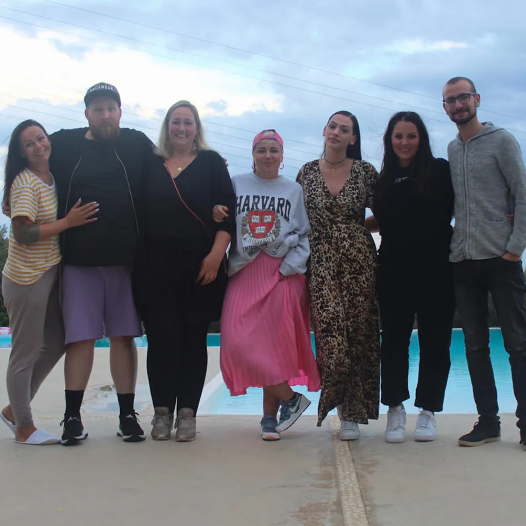 Wir betraten die Villa und setzten uns an den Pool. Und dann folgte der Moment, den ich nie vergesse. Wir saßen dort und redeten nett und plötzlich sah ich wie Francis sämtliche Gesichtszüge entglitten. Ich drehte mich um und dann sah ich auch unsere (fast) nackten Coaches. Wir alle drei waren baff. Damit hatte wohl niemand gerechnet. Als dann auch noch der Titel der Sendung folgte, saß bei mir der Schock tief.