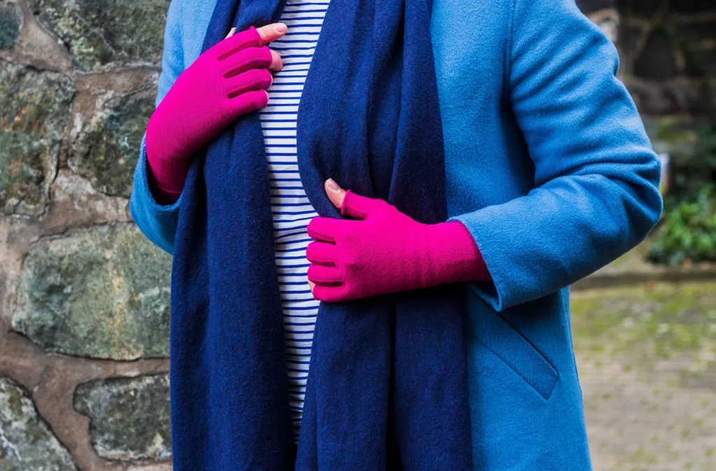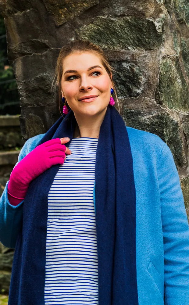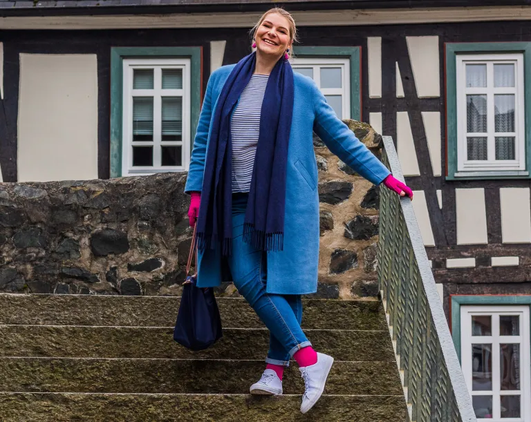 Was passt schon besser zu diesem süßen Accessoire, als eine mediven 550 in Magenta an Armen und Beinen? Das Timeless Muster an den Händen gibt dem Ganzen noch ein kleines Highlight und zusammen mit den sanften Blautönen und dem gestreiften Shirt ist der schicke Alltagslook einfach perfekt.