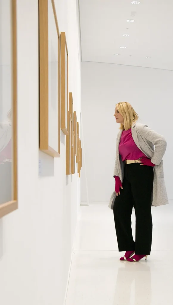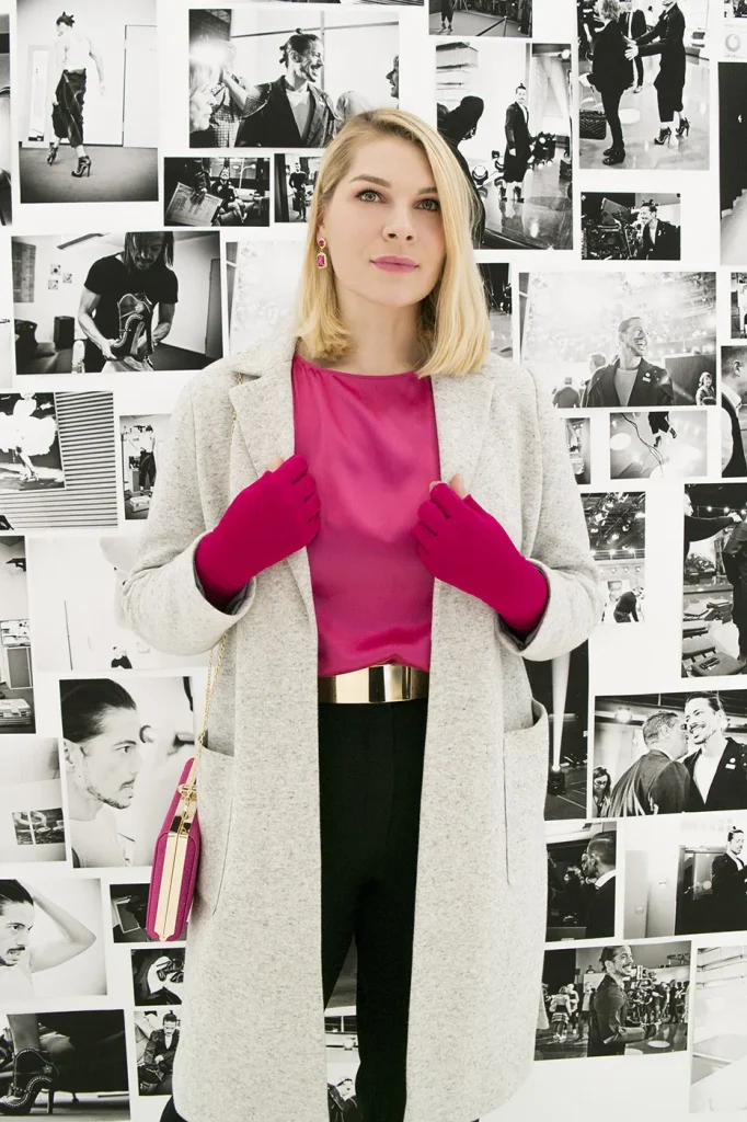 Ich habe in den Jahren seit der Diagnose meiner Arme ja schon einige Farben ausprobiert, aber als ich meine neuen mediven mondi esprit Amstrümpfe und Handschuhe in Magenta zum ersten Mal erblickte, traf es mich wie ein Schlag. Was für eine geballte Ladung Lebensfreude, ein gutes Gefühl und Stärke in diesem Farbton steckt. Und auch bei der Planung dieses Outfits fühlte ich mich schier beflügelt, als ich eins und eins zusammengezählt habe. Denn die Marlene Hose hatte ich schon so lange im Kopf mit mir herumgetragen und mir fehlte die zündende Idee, um ihr neues Leben einzuhauchen. Zusammen mit dem gleichfarbigen Seidenshirt und der Clutch ging es mir auf einmal ganz leicht von der Hand.